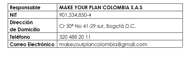 MAKE YOUR PLAN COLOMBIA S.A.S. recolecta y trata datos personales para las siguientes finalidades:
